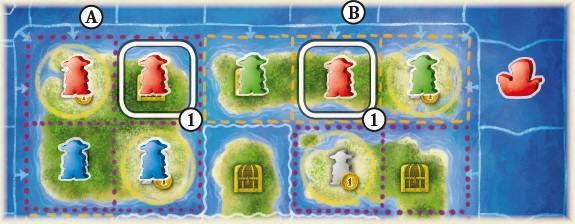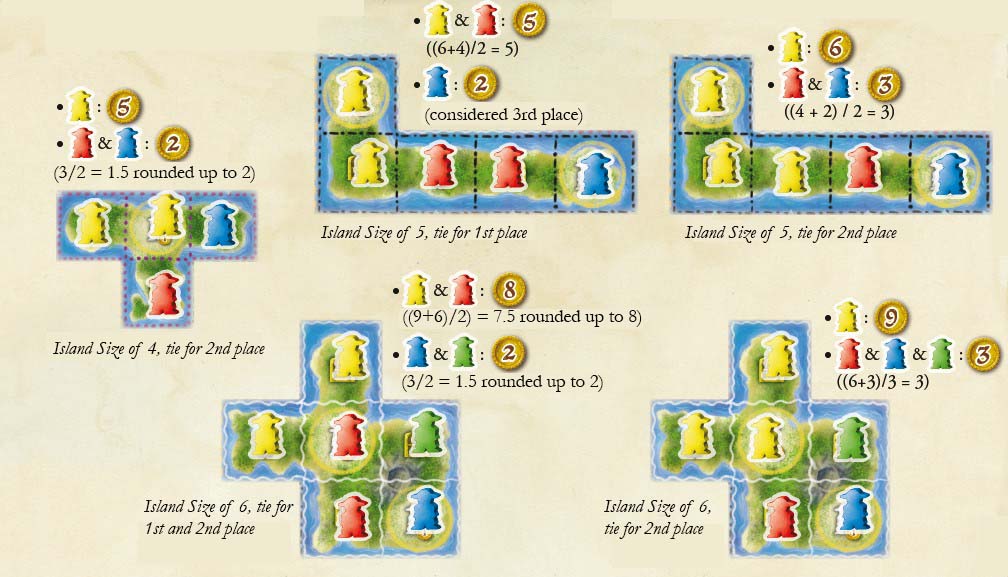 all of the spaces on an island, the player with the most pirates on
