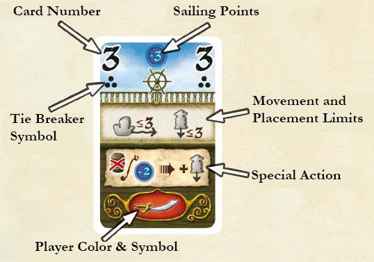 2Sort the 24 sailing cards by player color into 4 decks (the player color is indicated at the bottom of each sailing card).