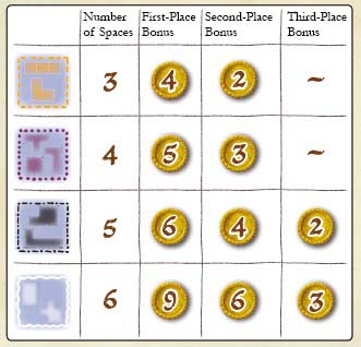 shown on the space where their marker is at the end of the game.