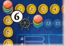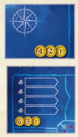 players will track their score during the game, and one on the “24” space of the (inner) sailing track.