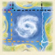 of the game board. The back side of the board has a storm in the center space