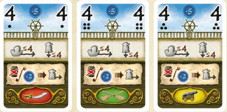 23 pirates (5 per player color, with 3 additional green pirates for two-player games)